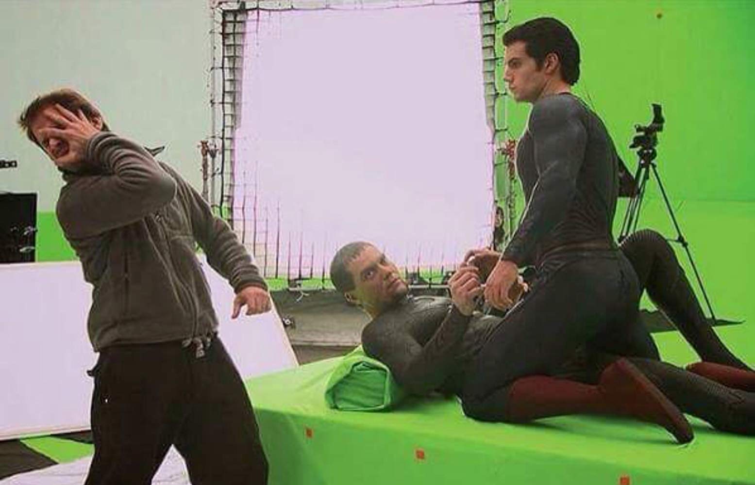 La prima foto di Henry Cavill nei panni di Superman, distribuita in rete nel 2011, guardate la posa fatta per non far notare che questa volta, l’ultimo figlio di Krypton si è messo le mutande rosse SOTTO i pantaloni e, di conseguenza, non far agitare la vecchia guardia dei fan del personaggio. Guardate la tutina rigata che tiene meglio la cottura (ed è perfetta per il ragù), guardate lui, Enrico Cavillo, scelto di persona dal produttore perché, a sua detta, era perfetto per stare dentro il costume. Cavillo è il Superman perfetto per uno tutta estetica come Snyder, statuario come un Dio greco e senza un cazzo da dire, infatti nel film il suo Clark Kent? Non pervenuto.