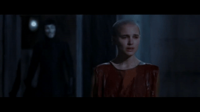 Non credo che nessuno si offenderà se scriverò che qui Natalie Portman, offre una delle sue interpretazioni migliori, se pur con qualche scricchiolio – ci torneremo più avanti – ma la sua Evey compie un arco narrativo completo e Natalina Portuale recita tutta la gamma di sentimenti necessari a dare spessore al personaggio, cuore lanciato oltre l’ostacolo, ma anche capelli sacrificati per la causa, solo Demi Moore per il non proprio memorabile “Soldato Jane” (1997) aveva optato per il taglio alla Sinead O’Connor, che concede al regista solo il più classico dei «Buona la prima!» per ovvie ragioni.